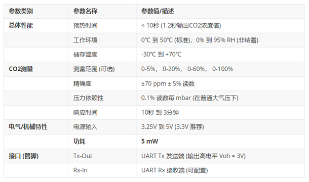 在這里,深圳市新世聯(lián)科技給大家推薦一款公司代理的英國(guó)GSS小體積緊湊型NDIR CO2傳感器---MINIR/ExplorIR-M傳感器,其功耗顯著降低至僅5mW,平均工作電流小于1.5mA(峰值電流33mA),供電電壓兼容3.3V。這使得它成為應(yīng)用于電池供電產(chǎn)品和便攜式設(shè)備的理想選擇,特別適合集成到移動(dòng)式或小型氣調(diào)包裝設(shè)備中,或作為無線監(jiān)測(cè)節(jié)點(diǎn)部署。其在0-100%的寬測(cè)量范圍內(nèi)(可選特定子范圍如0-5%,0-20%等),可提供±(70ppm±5%讀數(shù))的精度,并具備極短的預(yù)熱時(shí)間(<10秒,1.2秒輸出初步濃度值)和用戶可配置的響應(yīng)時(shí)間(10秒至3分鐘),采用小巧的20mm直徑探頭式封裝。