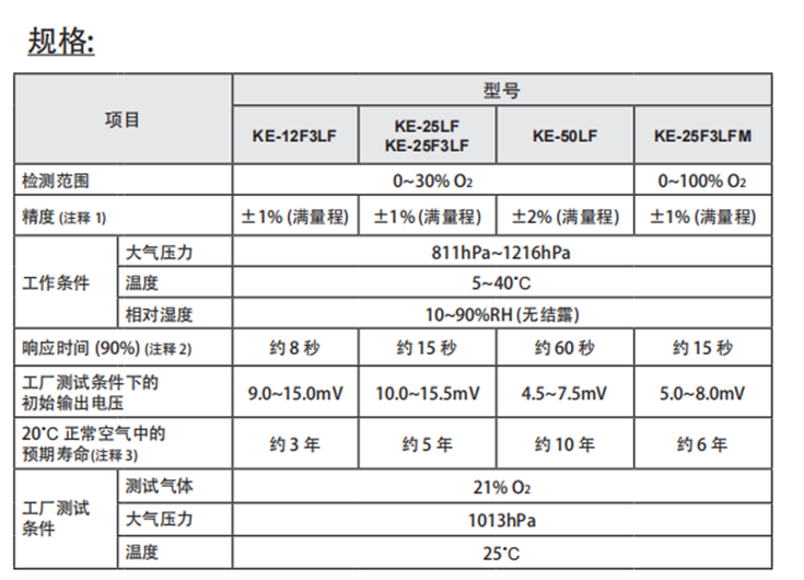 KE-LF系列無鉛電池式氧氣傳感器的特點: