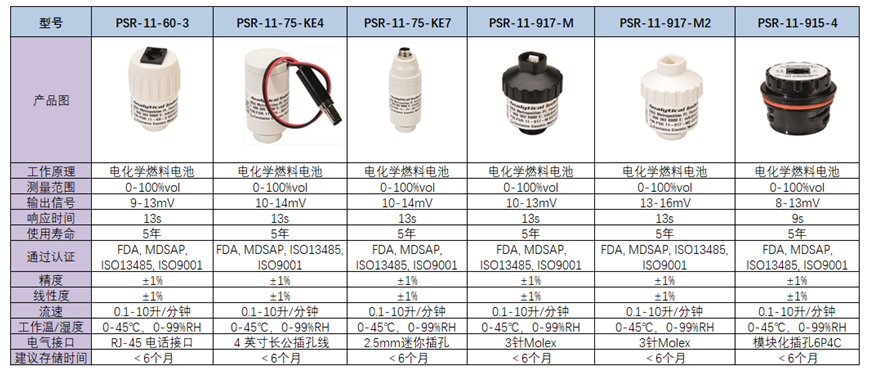 美國(guó)AII品牌(醫(yī)療用)氧氣傳感器幾款型號(hào)和對(duì)應(yīng)的基本參數(shù)簡(jiǎn)介如下: