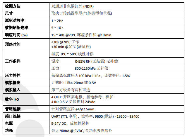 意大利Novasis 紅外氣體傳感器模塊 NG2系列產(chǎn)品一般參數(shù):